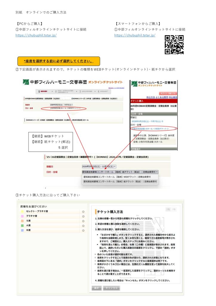 ①中部フィルオンラインチケットサイトに接続 https://chubuphil.tstar.jp/